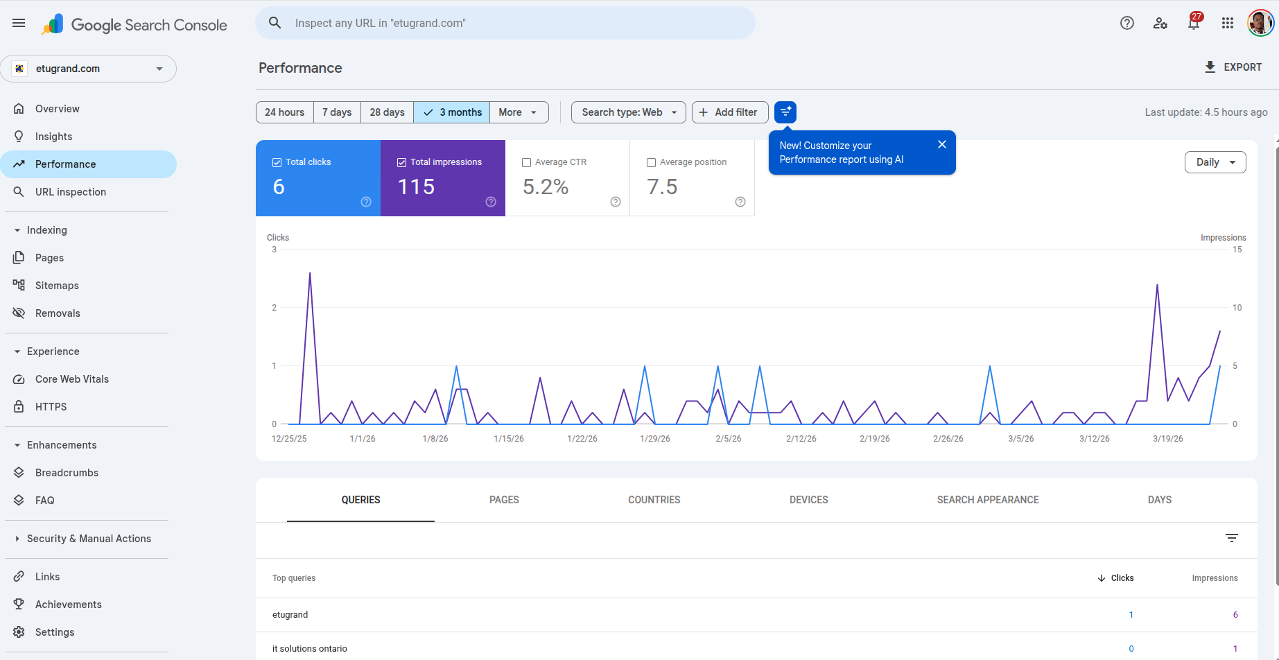 - Top performing queries and pages