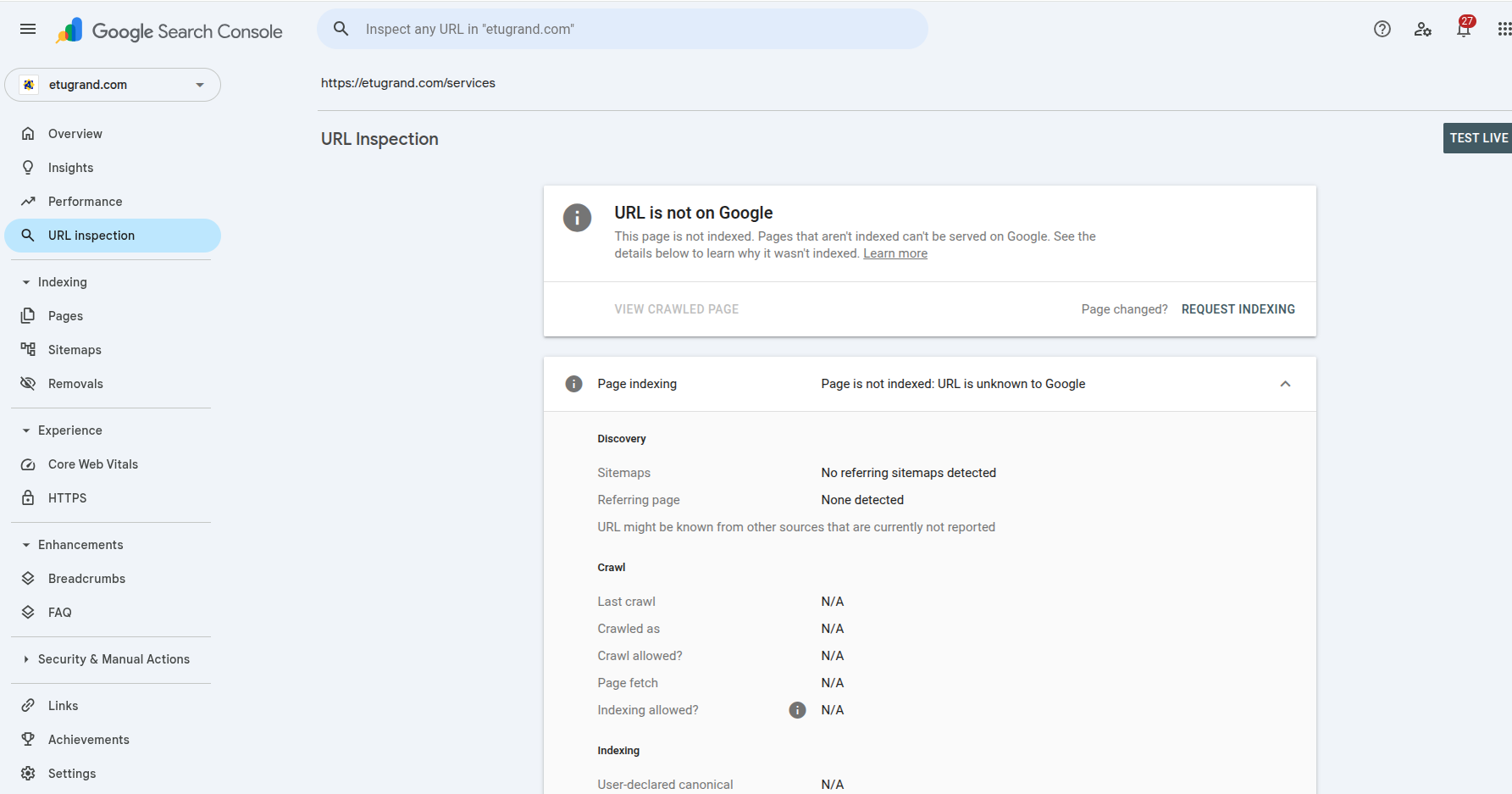 - Click "Request indexing" (if page is not indexed)