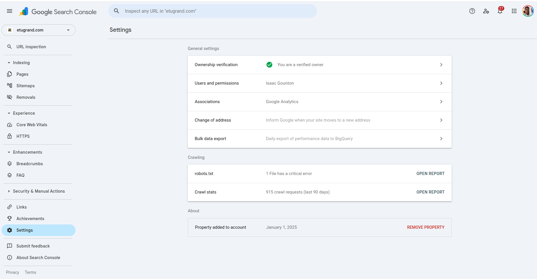 - Users: Who has access to this GSC property